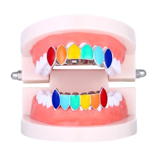 Kolorowe grille hip-hopowe z górnym i dolnym zębem, do osobistego noszenia lub prezentu dla przyjaciół.