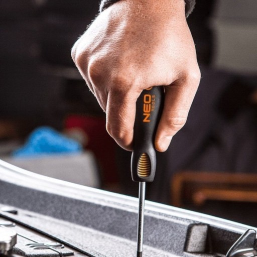 Wkrętak krzyżowy PH NEO (nr ref. 04-023) o wymiarach PH2 x 38 mm. Grot wkrętaka wykonany jest z wyjątkowo wytrzymałej stali S2. Końcówka robocza grota została poddana obróbce cieplnej, dzięki czemu uzyskano odpowiednią twardość i odporność na zgięcia 56 HRC. Wkrętak posiada magnetyczną końcówkę. Trójgraniasty kształt uchwytu z wyprofilowanym oparciem dla kciuka zmniejsza obciążenie dłoni podczas pracy i ułatwia uzyskanie optymalnego momentu obrotowego. Uchwyt dwumateriałowy zapobiega ślizganiu się w dłoni, odporny jest na działanie chemikaliów, olejów i smarów. Jakość narzędzia potwierdzona certyfikatem TÜV i 25-letnią gw. producenta. Marka NEO spełnia oczekiwania profesjonalistów.