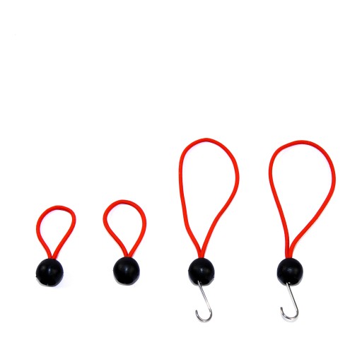Elastyczne gumki są bardzo łatwe w użyciu i pozwalają na bardzo szybkie założenie lub demontaż mocowanego przedmiotu. Wystarczy przewlec gumkę przez oczko montażowe i owinąć ją wokół kulki.