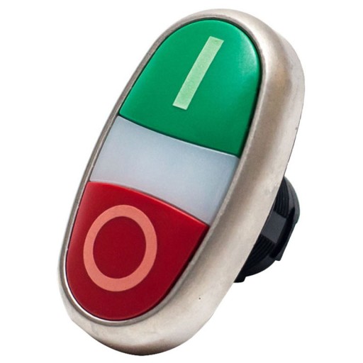 Przycisk podwójny podświetlany, zielony, czerwony, chromowany, PPDLRCL.
