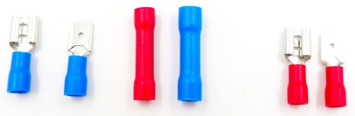 Izolowane konektory zaciskane dostarczone w wygodnym solidnym opakowaniu ułatwiającym segregację na poszczególne rodzaje konektorów.