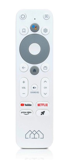 Bardzo wygodny pilot w minimalistycznym stylu, ale ze wszystkim czego potrzebujesz. Szybko go opanujesz, a nawigacja w menu będzie dla Ciebie bezproblemowa. Na elementach sterujących znajdziesz przyciski szybkiego dostępu do aplikacji YouTube lub jednej z najpopularniejszych usług streamingowych Netflix. Pilot służy również jako mikrofon dla Google Assistant.