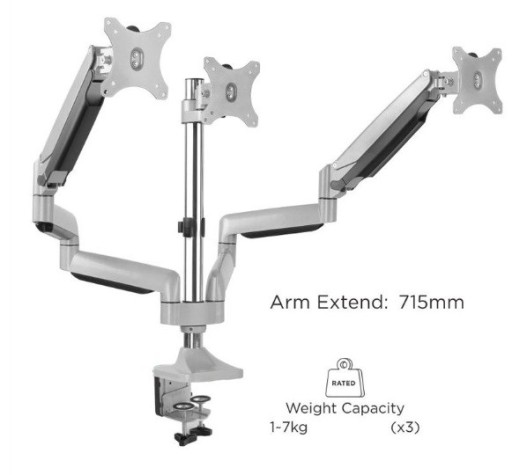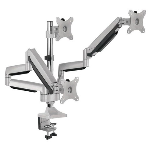 Ramię monitora LCD ze sprężyną gazową - do łatwej i niezawodnej regulacji trzech monitorów o wadze 7 kg każdy i VESA 75/100.