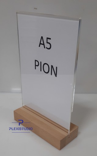 STOJAK NA ULOTKĘ A5 PIONOWY PLEXI DREWNO
