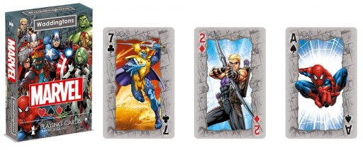 Talia kart do gry zilustrowana motywami z komiksów uniwersum Marvela.