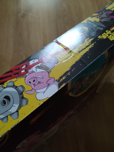 Karton posiada bardzo widoczne rysy i otarcia. Przetarcia nadruku. Załamnia na kartonie. Przetarcia na bokach i rogach.