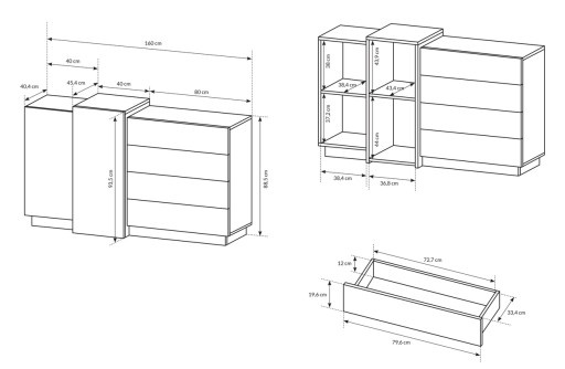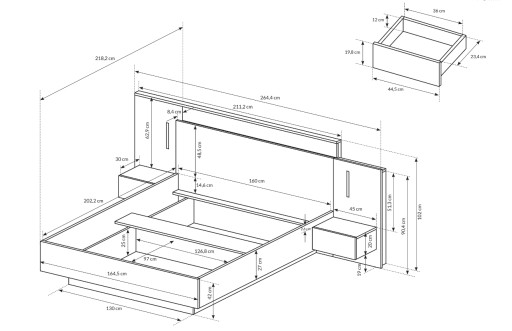 - dwa stoliki nocne po bokach łóżka - system otwierania: Push to Open