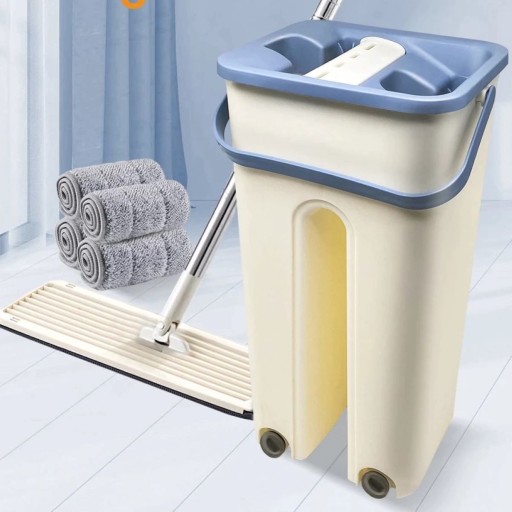 ДВУХОСНОВНАЯ ВРАЩАЮЩАЯСЯ ПЛОСКАЯ ШВАБРА С ВЕДРОМ