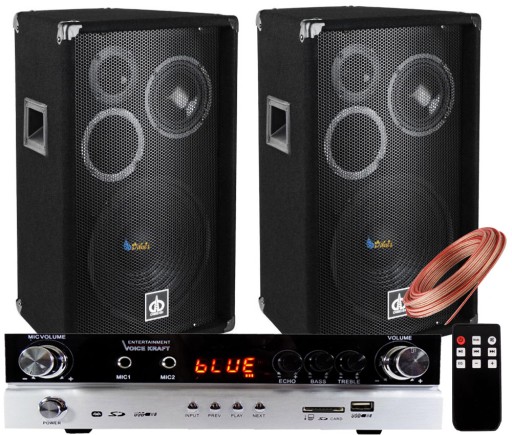 KOLUMNY ESTRADOWE O MOCY ŁĄCZNEJ 600 W NA POTĘŻNYM 8-CALOWYM GŁOŚNIKU ORAZ SOLIDNY WZMACNIACZ Z TUNEREM RADIOWYM, BLUETOOTH, WEJŚCIEM USB I SD, WEJŚCIAMI NA MIKROFONY ORAZ FUNKCJĄ KARAOKE