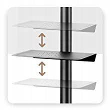 - Kompatybilność z telewizorem: ta uniwersalna, rolowana podstawka pod telewizor jest odpowiednia dla telewizorów od 23 27 32 37 40 42 43 46 47 49 50 55 60 cali LCD LED OLED płaskie i zakrzywione cale, max. 40 kg. Kompatybilny VESA: 100x100 - 600x400 mm REGULOWANA WYSOKOŚĆ - Możesz łatwo regulować wysokość telewizora od 1150mm do 1550mm, regulując drążek i wspornik. Solidna półka stolika pod telewizor z kółkami zapewnia miejsce na odtwarzacze DVD, odbiorniki lub system do gier; można go również regulować w zakresie od 240 do 640 mm do podłogi. Wygodny ruch - wózek pod telewizor z 4 wytrzymałymi kółkami 360°. 2 kółka wyposażone w nożne hamulce postojowe z przodu sprawiają, że wózek TV jest stacjonarny lub mobilny, co jest również praktyczne do przenoszenia telewizora w dowolne miejsce w domu, w sypialni, w salonie, w biurach, szkołach, hotelach, na lotniskach, w ogród, w szpitalach. Wielofunkcyjna konstrukcja - dzięki zintegrowanemu systemowi zarządzania kablami konstrukcja pustej kolumny z dwoma otworami pomaga utrzymać kable w porządku; wysokiej jakości stalowa rama o stylowym połysku zapewnia trwałość i stabilność; Płaskie tylne nóżki ułatwiają umieszczenie stojaka TV blisko ściany.
