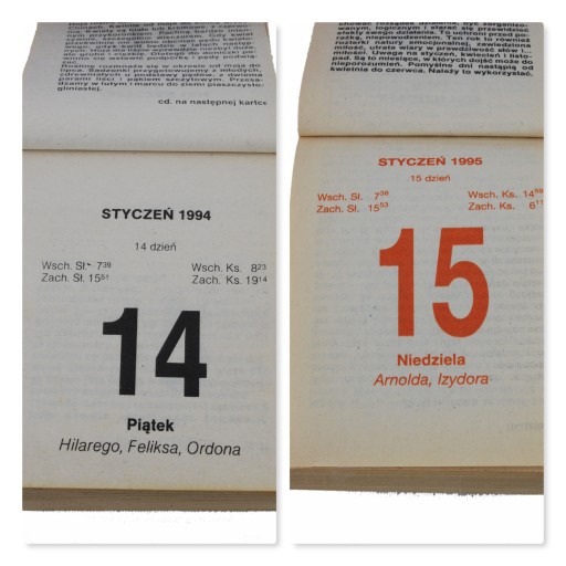 Tu kupisz oryginalną kartkę wydartą z kalendarza zdzieraka z lat 1990 - 1999. Dzień, miesiąc i rok oczywiście wybierzesz sam(a). Nie zapomnij podać daty w "uwagach do zakupu". Przykładowe kartki na zdjęciach.
