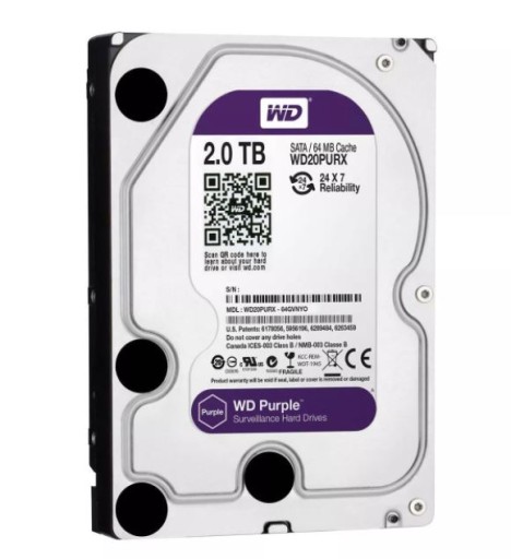 Dysk w zestawie to model z serii Purple, dedykowanej do monitoringu, charakteryzującej się wyższą żywotnością.