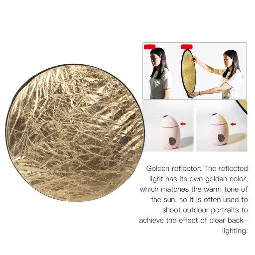1. Odcień światła wytwarzany przez złoty reflektor jest cieplejszy. Złoty reflektor jest częściej używany jako główne światło i jest często używany na portretach, aby skóra wyglądała zdrowiej i lśniła.