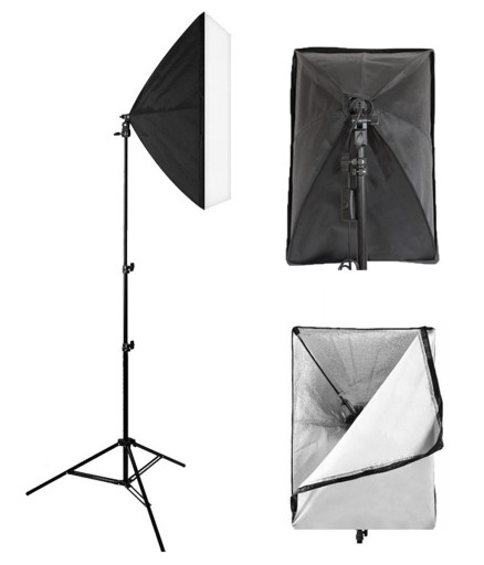 - Zestaw studyjny świetnie sprawdzi się zarówno jako oświetlenie tła jak i główne źródło światła. Softbox zapewnia równomierne rozproszenie światła w wymaganym kierunku.