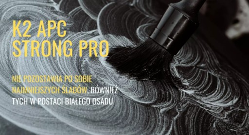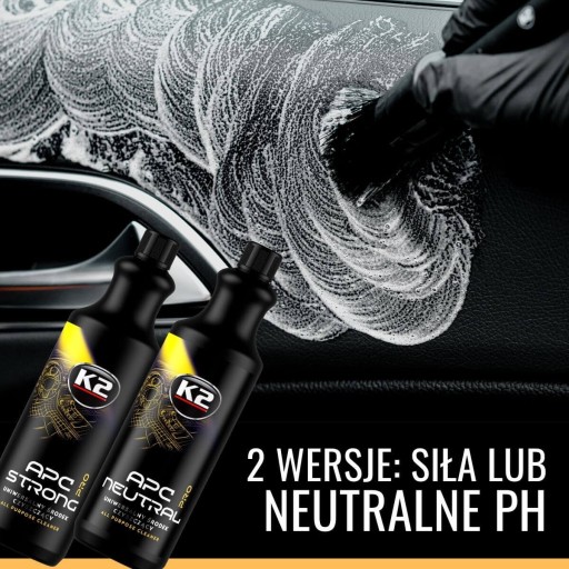K2 APC STRONG PRO to potężny brat K2 APC Neutral Pro. Niezwykle silny, uniwersalny, wszechstronny i niskopienny produkt do czyszczenia wszystkich powierzchni na zewnątrz i we wnętrzu auta. Koncentrat, maksymalnie skoncentrowany na swoim celu. Poziom jego siły ujawnia się w zależności od stopnia rozcieńczenia.