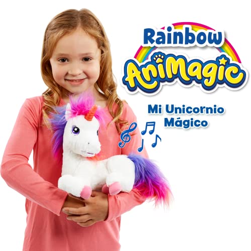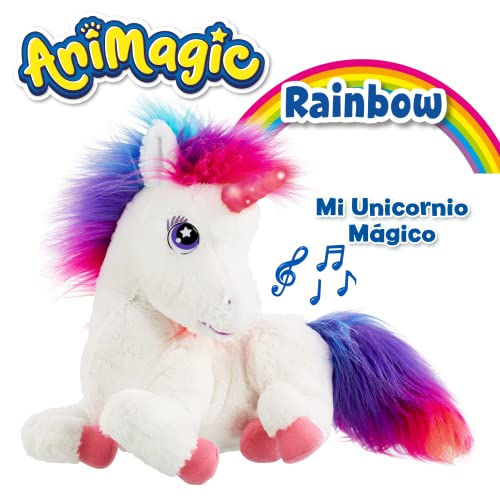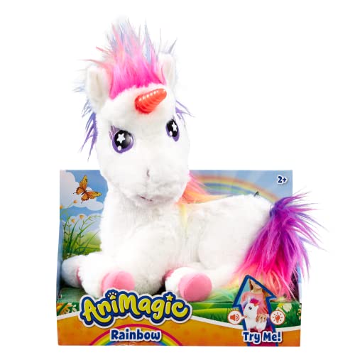 Pogłaskaj go po grzbiecie a jego róg będzie swiecił kilkoma kolorami a jednorożec zacznie wydawać różne dźwięki