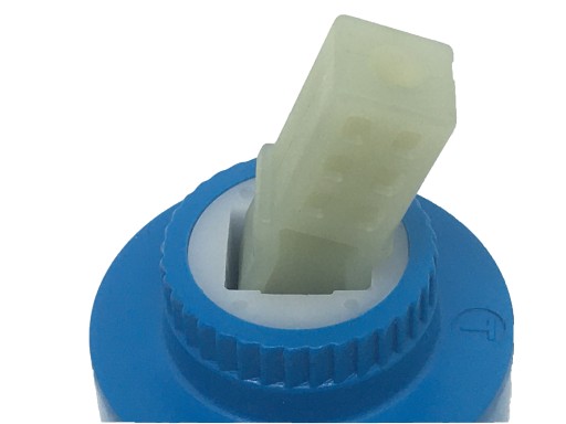 Głowica, zawór, wkład do baterii kabiny prysznicowej z hydromasażem. Korpus głowicy oraz trzpień wykonane są z tworzywa sztucznego, mechanizm głowicy ( środek głowicy ) wykonany z ceramiki. Głowica otwiera i zamyka dopływ wody oraz reguluje ciepłą i zimną wodę. Średnica głowicy fi 40 mm.