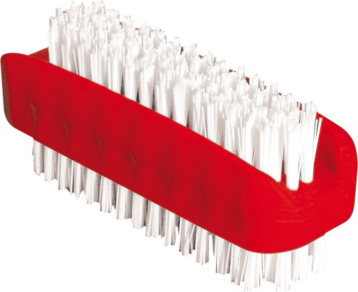 Dwustronna szczoteczka do rąk wykonana z tworzywa sztucznego. Praktyczna i estetyczna, idealna do czyszczenia.