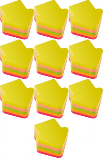 Bloczek jest idealny do sporządzania notatek czy pozostawiania krótkich wiadomości i przypomnień, gdyż żywe kolory nie pozwolą ich przeoczyć. Nieszablonowy kształt sprawia iż jest doskonały dla osób, które chcą się wyróżnić. Znajdzie swoje zastosowanie w biurze, domu, a także szkole. Notes z samoprzylepnym paskiem wykonany jest z wysokiej jakości papieru. Karteczki można wielokrotnie przeklejać. Bloczek o wymiarach: 70 x 70 mm zawiera 400 karteczek.