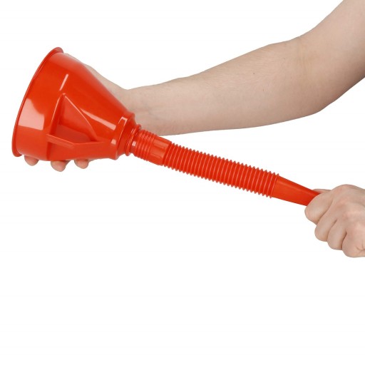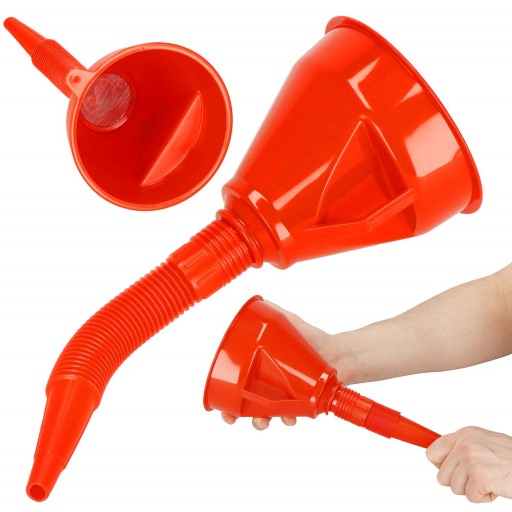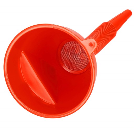 Oprócz samego lejka z sitkiem w zestawie otrzymujesz elastyczny wlewak, dzięki któremu z łatwością dotrzesz do trudno dostępnych miejsc. Giętka i łatwo formowana rurka w połączeniu z dużym uchwytem zapewniają wygodne użytkowanie.