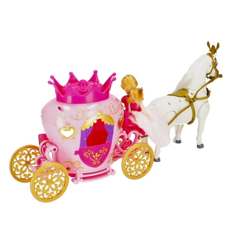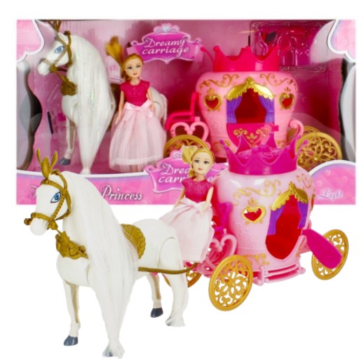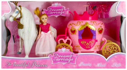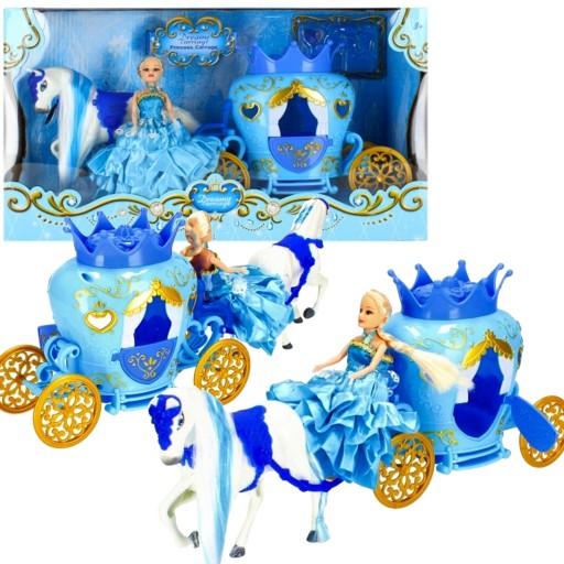 Zalety produktu: kareta posiada efekty świetlne oraz dźwiękowe, ruchome koła, otwierane drzwi, koń posiada długą grzywę i ogon, księżniczka posiada długą balową suknię, zestaw w kolorze niebieskim. Kto nie zna historii Kopciuszka Teraz dzięki zestawowi MEGA CREATIVE z fantazyjną karetą, każdy może się przenieść w podróż na bal Zawartość zestawu: kareta, koń, lalka, lustro, szczotka do włosów, grzebień, suszarka oraz perfumy. Całość wykonana z plastiku, materiału oraz sztucznego włosia. Wymiary/waga/baterie: wymiary produktu dł. x wys. x gł. cm : kareta-21x19x9, koń-17x19x5, wymiary opakowania dł. x wys. x gł. cm : 38x22x14, waga produktu bez opakowania kg : 0,29 kg, waga produktu w opakowaniu kg : 0,56 kg, wymaga zasilania bateriami 3 x AG13-załączono do zestawu. Zestaw przeznaczony dla dzieci w wieku: 3 . Pakowany w kartonik z okienkiem. W kartonie zbiorczym po 10 szt.