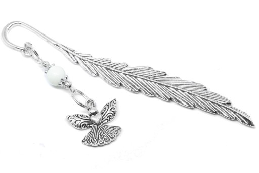 Elegancka zakładka do książki z zawieszką w kształcie anioła z dodatkiem akrylowego koralika.