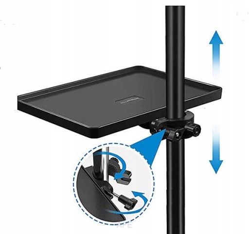 ◇ Dodatkowo statyw został wyposażony w praktyczną tackę lub półkę, łatwą w montażu, która zapewnia dodatkowe miejsce na różnego rodzaju akcesoria, takie jak perkusjonalia, teksty, telefon, kosmetyki czy butelkę z wodą.