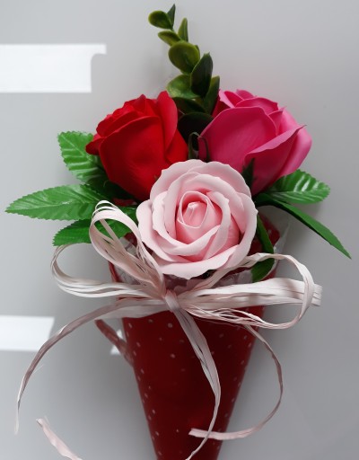 Pachnący bukiet róż z mydła posłuży do aromatycznej kąpieli. Poza tym kwiaty pięknie i długo pachną...