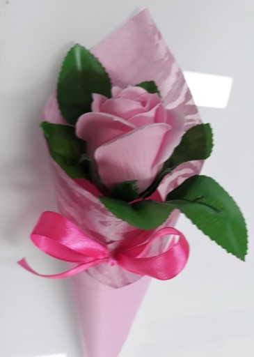 Róża mydlana w rożku to znakomity prezent dla nauczyciela na imieniny, urodziny, walentynki, dzień kobiet...który sprawi obdarowanej osobie mnóstwo pachnącej radości...