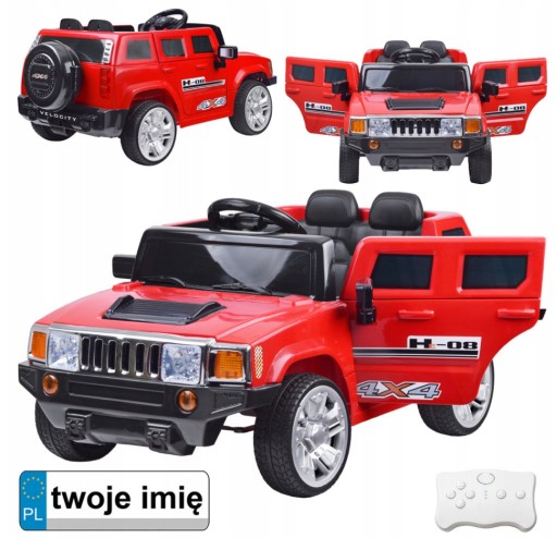 Najnowsza wersja HUMMER VELOCITY posiada 2 mocne silniki 12V + 2 x akumulator żelowy 6V 4,5Ah + PILOT 2,4Ghz dla rodzica.