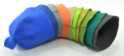 -czapki filcowe 3 mm grubości.