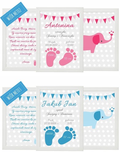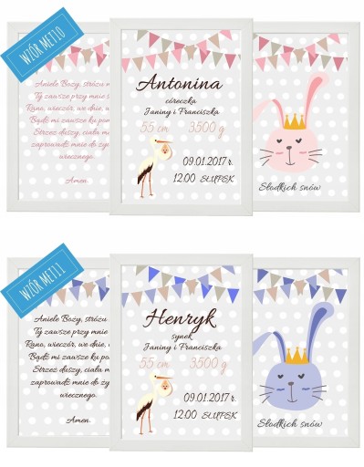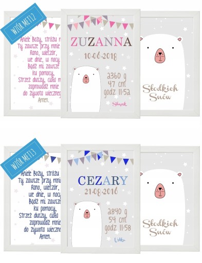 Uwaga! Po zakupie prosimy o wskazanie wybranego zestawu oraz podanie imienia, daty, godziny, miejsca urodzenia, wagi i wzrostu dziecka.