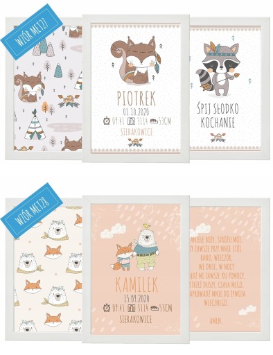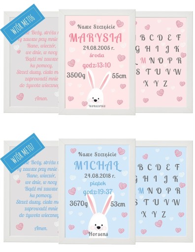 ZESTAW 3 PLAKATÓW. METRYCZKA, MODLITWA , PLAKAT. TRYPTYK Z RAMKAMI
