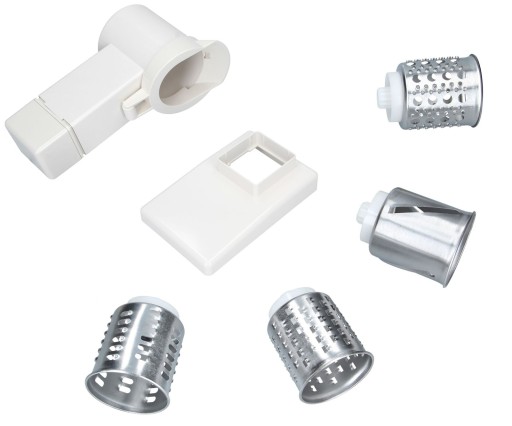 Zestaw obejmuje: 4x tarka, komora, zatrzask, misa zasypowa, popychacz