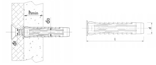 - Minimalna głębokość otworu w podłożu (h0): 75 mm