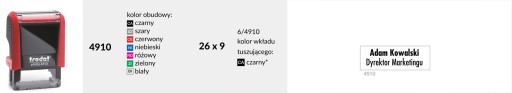 - w uwagach do zamówienia określ kolor tuszu (domyślnie czarny) oraz podaj dane, które mają znaleźć się na pieczątce