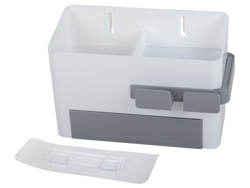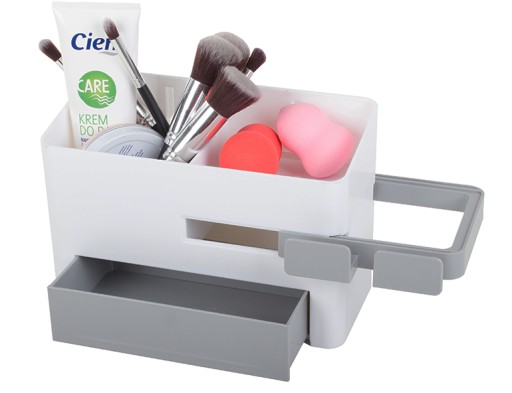 Uniwersalny organizer łazienkowy to idealne rozwiązanie by utrzymać porządek w swojej łazience. Organizer posiada pojemnik z przegrodą, szufladę oraz wysuwany uchwyt na suszarkę.