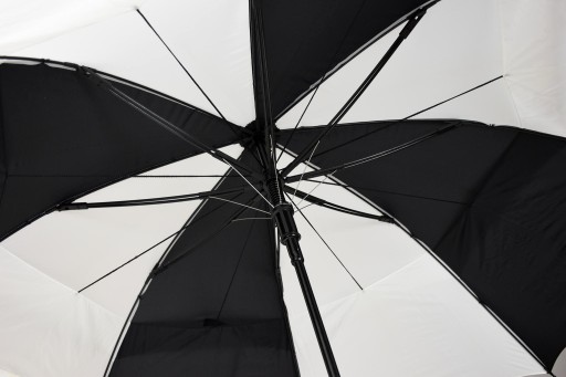 - podwójna czasza - dzięki otwartej przestrzeni między czaszami zagrożenie ze strony wiatru jest maksymalnie zmniejszone, jednocześnie nie osłabiając ochrony przed deszczem, nawet tym zacinającym pod ostrym kątem