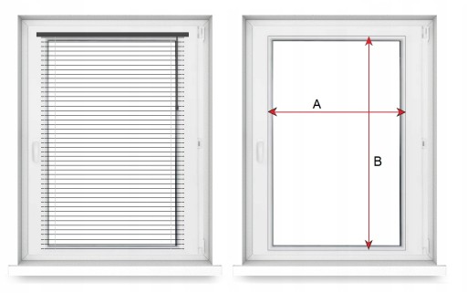 - Dokładny wymiar żaluzji (szerokość A oraz wysokość B ) - będzie to wymiar całkowity żaluzji