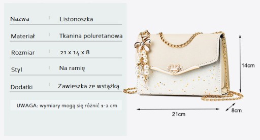 Zalety tej torebki to przede wszystkim jej pojemność. Mimo niewielkich rozmiarów, zmieścisz w niej wszystkie niezbędne rzeczy, takie jak portfel, klucze, telefon czy chusteczki higieniczne. Torebka posiada także wygodne rączki, dzięki czemu możesz ją nosić w ręku lub na ramieniu.