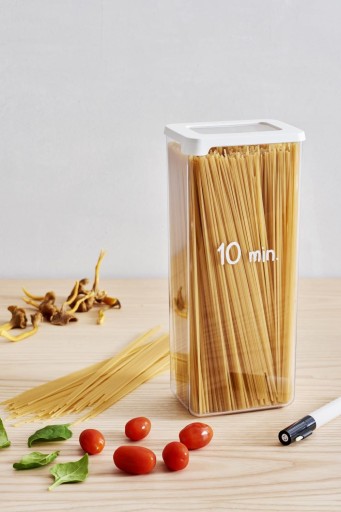 Hermetyczne, sztaplowane i modułowe pojemniki na suchą żywność, które utrzymują suchość i świeżość żywności. Przezroczysta pokrywa pozwala na łatwą identyfikację zawartości szuflady kuchennej. Idealny rozmiar do przechowywania np. orzechów, nasion, cukru, mąki, kawy i wielu innych produktów suchych.