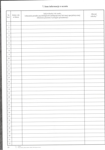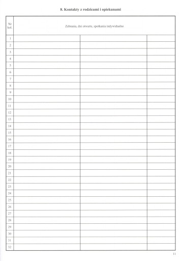 10. Realizacja tygodniowego planu nauczania - miesiąc .....