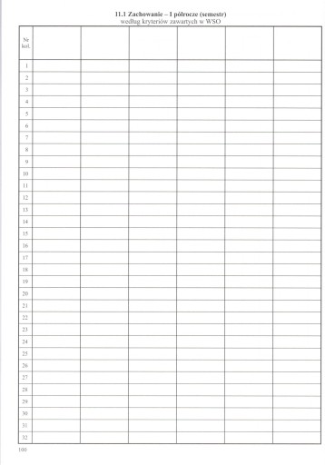 11.1. Zachowanie - I półrocze (semestr), II półrocze (semestr) / wg kryteriów zawartych w WSO /