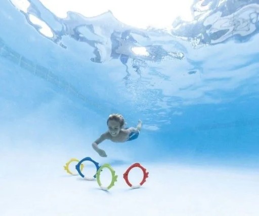 Twoje dziecko potrafi już pływać i chcesz, by zrobił krok do przodu? Nauka nurkowania to sama przyjemność, jeżeli ma się odpowiednie do tego akcesoria. Kółka do nurkowania to świetne urozmaicenie dla dzieci, które dopiero zaczynają przygodę z podwodnym światem. Po pierwsze zachęcą je do nauki poprzez zabawę, a po drugie pozwolą wypracować odpowiednie ruchy pod wodą. Wystarczy rzucić je na powierzchnię wody, a każde z kolorowych kołek będzie swobodnie opadać na dno. W tym czasie maluch musi odnaleźć wszystkie. Dzięki odpowiedniej kolorystyce i kształtom rybek, dziecko z łatwością zlokalizuje każdą z nich. Wszystkie obręcze wchodzące w skład zestawu wyprodukowane zostały z bezpiecznego tworzywa, które spełnia wszelkie normy bezpieczeństwa. Są łatwe w uchwyceniu, lekkie i nie posiadają ostrych zakończeń, dzięki czemu maluch swobodnie wyłowi je na powierzchnię. Zabawa w łowienie rybek pozwoli dziecku wypracować umiejętność oddychania pod wodą oraz sprzyja prawidłowemu rozwojowi układu ruchowego. To najlepszy sposób na rozpoczęcie nauki nurkowania i inwestycja w zdrowie dziecka.