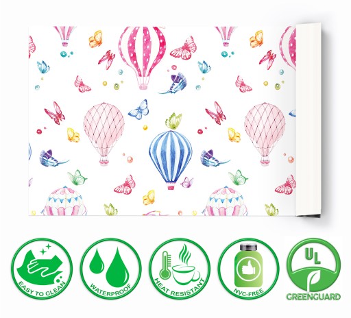 Защитный детский коврик на стол, воздушные шары пастельных тонов.