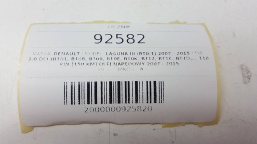 Zastosowanie: RENAULT LAGUNA III (BT0/1) 2007 - 2015 2.0 dCi (BT01, BT08, BT09, BT0E, BT0K, BT12, BT1C, BT1D,... 110 kW [150 KM] olej napędowy 2007 - 2015