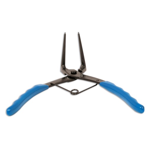 Szczypce zaciskowe wewnętrzne z przedłużonymi końcówkami pod kątem 90 ° idealne do zdejmowania i zakładania pierścieni sprężynujących w tłoczksch hamulcowych samochodów grupy VW/AUDI i cylindrach hydraulicznych w motocyklach.