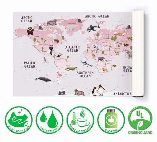 Защитный коврик для стола для девочек - карта мира