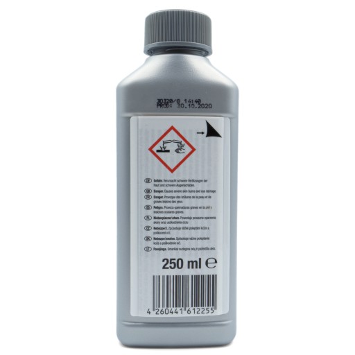 Sposób użycia: W przypadku normalnych osadów wapiennych rozpuścić ok. 80 ml w ok. ½ litra wody – w przypadku silnych osadów wapiennych użyć ok. 125 ml. Roztwór wlać do zbiornika na wodę urządzenia, uruchomić urządzenie i odczekać, aż ciecz się przez nie przeleje. Następnie wypłukać urządzenie czystą wodą w ilości odpowiadającej objętości dwóch zbiorników na wodę.