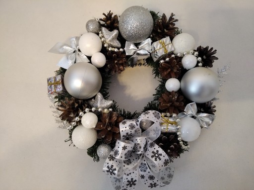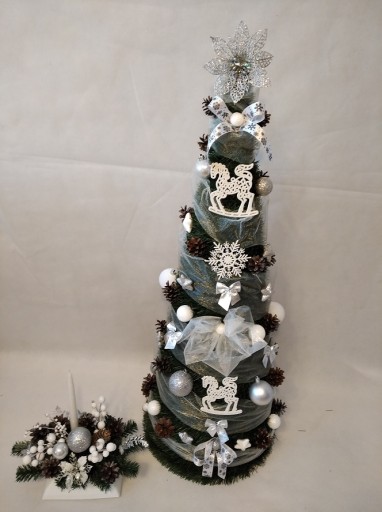 8. SREBRNO- BIAŁA Z STROIKIEM Z CHOINKĄ